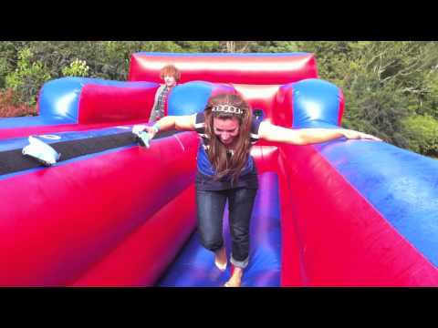 - Wir haben eine Art Hüpfburg gemietet (vergleichbar mit der Hüpfburg aus dem dem Video), in der ihr das Bungee Run gegen einen Mitspieler spielt